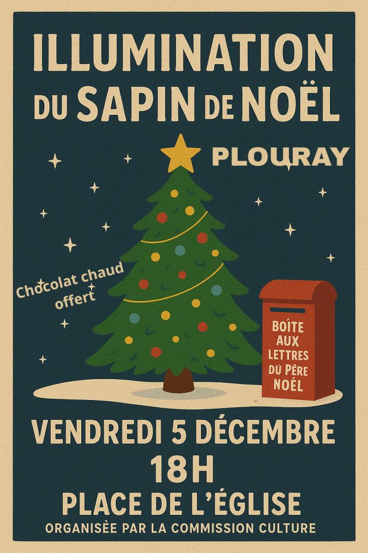 Venez participer à l'illumination du sapin de Noël douillettement installé au coeur du bourg. Pensez à prendre vos courriers, la boîte aux lettres du Père Noël vous y attend au pied du sapin.