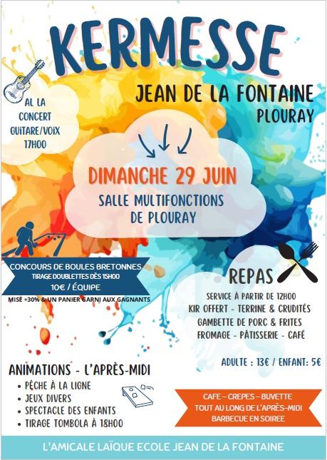 L'Amicale Laïque et l'école Jean de La Fontaine sont heureux de vous inviter à leur kermesse. Venez nombreux participer au repas ainsi qu'aux différentes activités proposées.