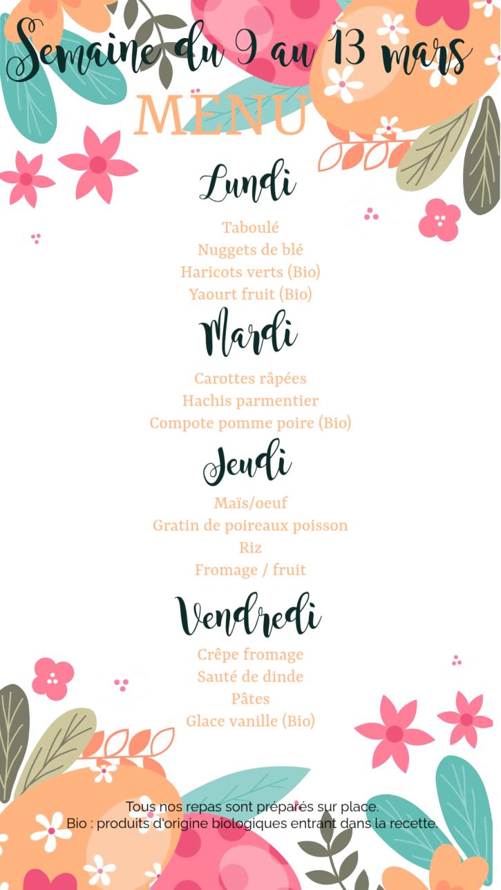Menu du 9 au 13 mars