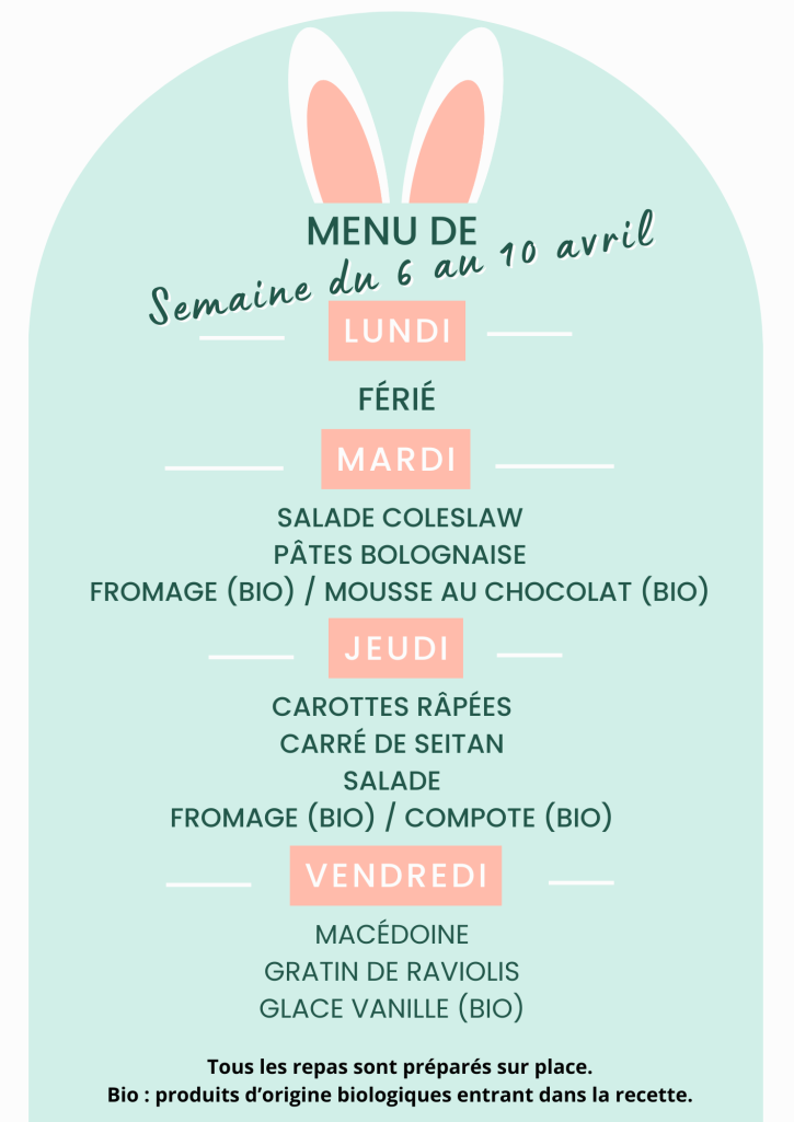 Trouvez ci-dessous le menu de la semaine :